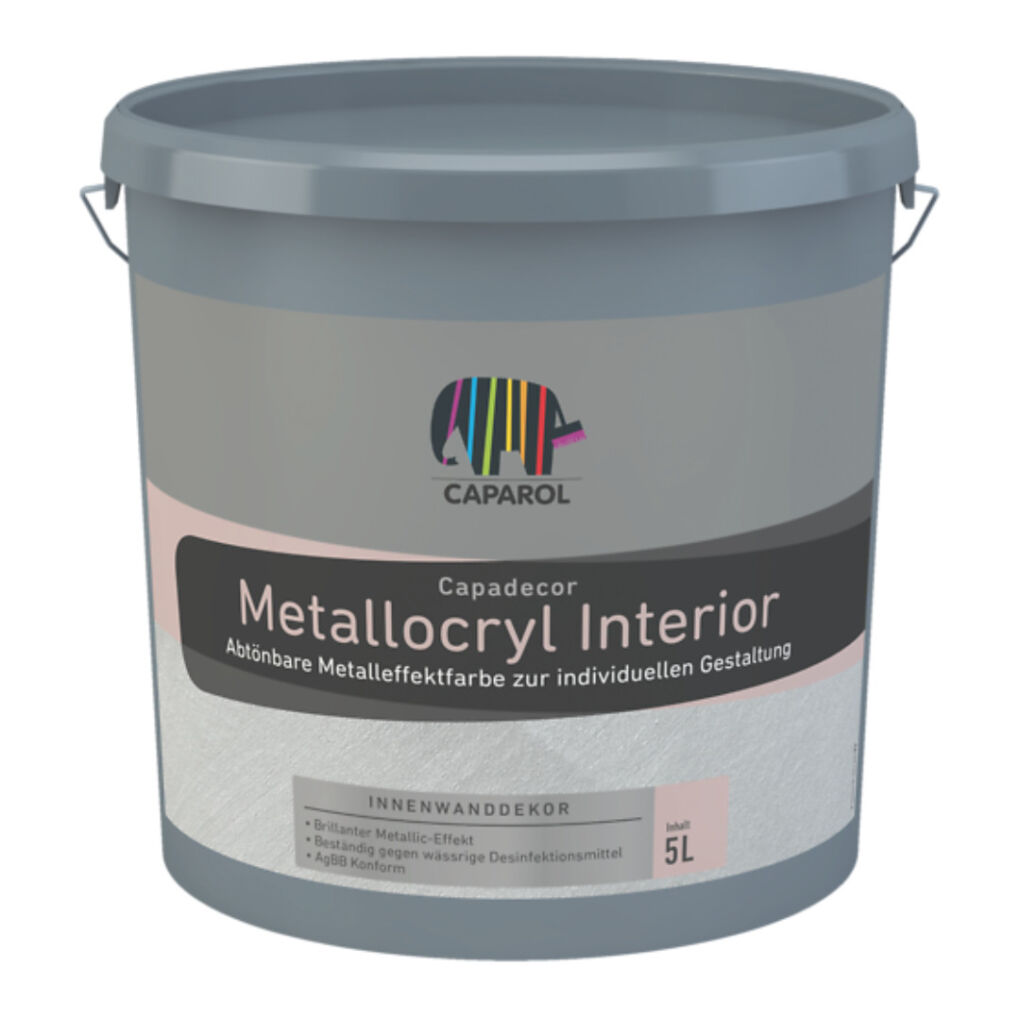Metallocryl Interior є блискучою дисперсійною фарбою, зі спеціальними металевими пігментами, що служить для фарбування поверхні стін всередині приміщень. Зокрема застосовується в репрезентативних зонах і в зонах, що знаходяться в центрі уваги численних відвідувачів, таких, як торгові центри, комплекси офісних приміщень, банки, страхові товариства, вокзали та аналогічні об’єкти. Metallocryl Interior повинен застосовуватися на структурованих поверхнях, таких як: