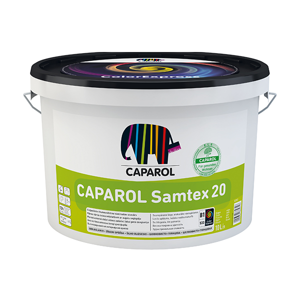 Samtex 20 E.L.F. тонується машинним способом по системі ColorExpress в усі тони з колірних колекцій CaparolColor, Caparol 3D, NCS, Panorama, RAL та багатьох інших, відомих на ринку колірних колекцій. Інтенсивні і яскраві колірні відтінки, наприклад жовтий, помаранчевий, червоний і т.д. володіють меншою здатністю покриття. Рекомендується проміжне покриття у відповідному пастельному відтінку на базі пігментованої білoї фарби (база 1). Може знадобитися друге заключне покриття.